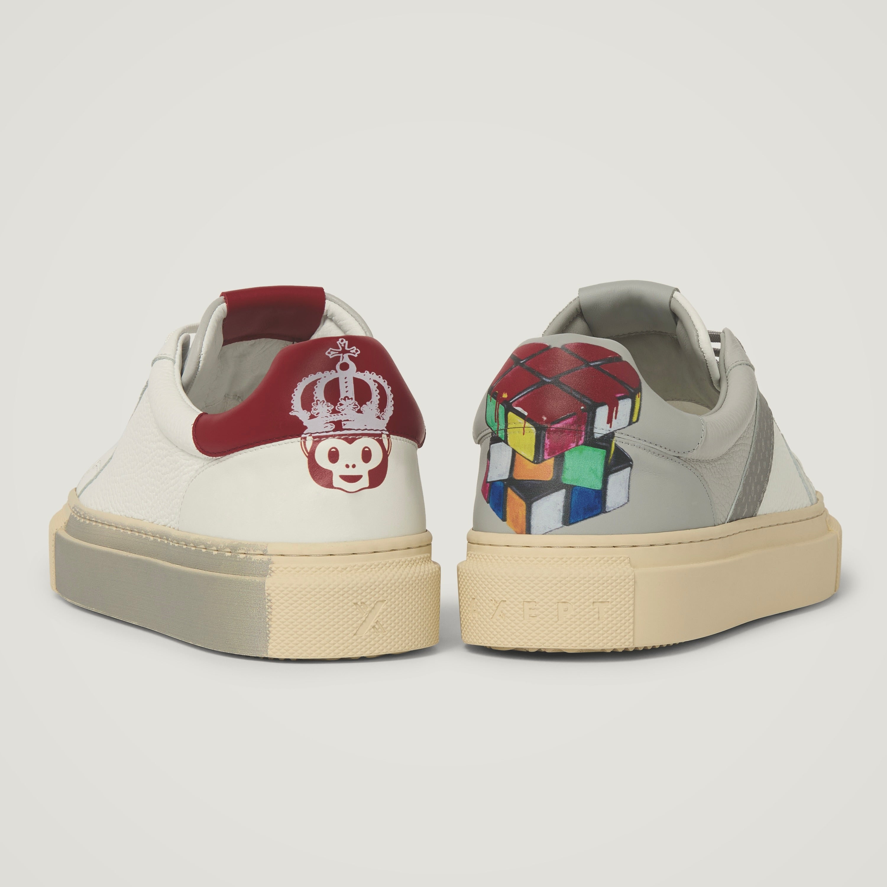 Included with your order: for the first 88 pre-orders, each pair also includes a signed and numbered lithograph of Simone Fugazzotto’s unreleased artwork featured on the sole — a collector’s piece conceived as an extension of the project itself.