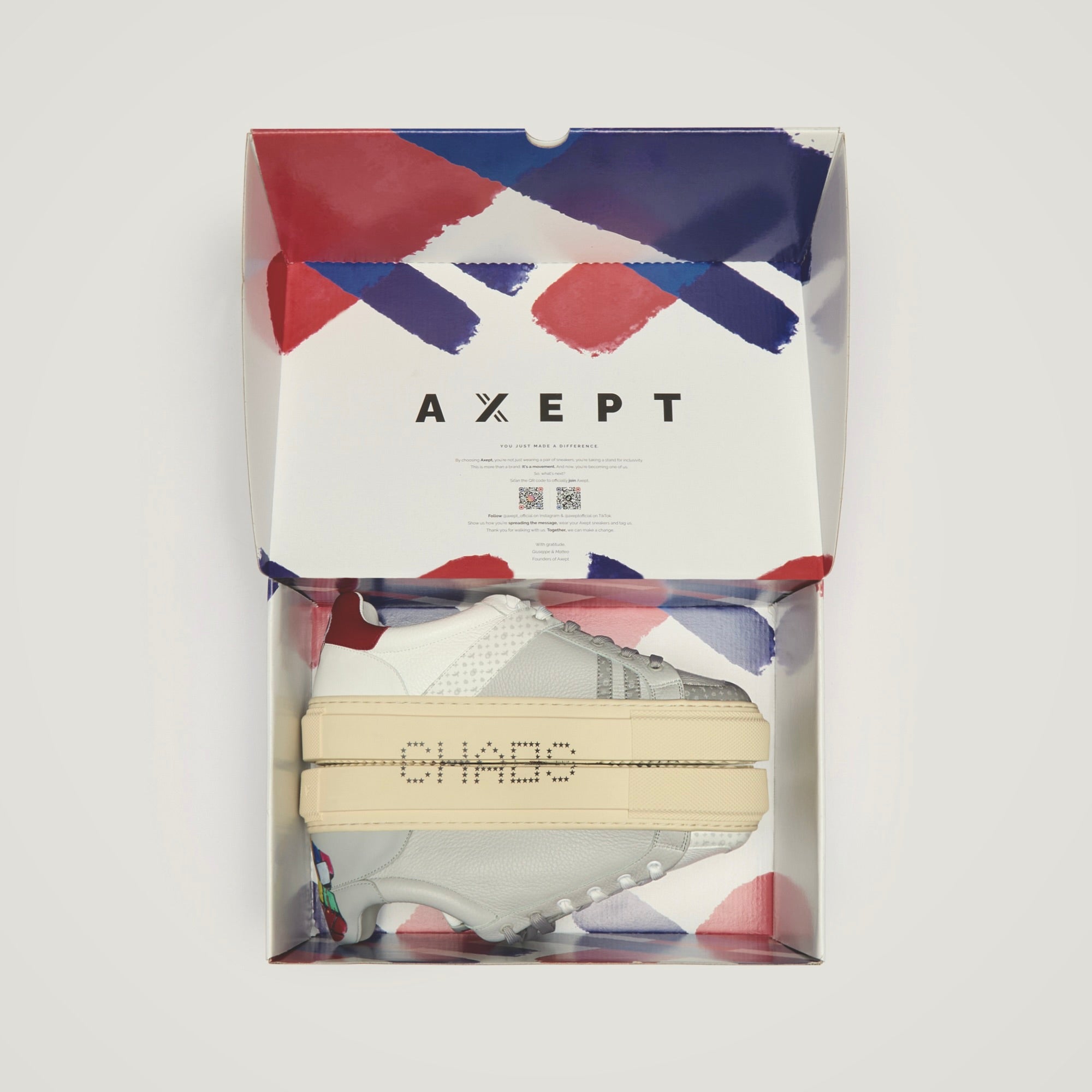 Axept’s signature mismatched identity takes on a new form with Chaos, the sneaker created in collaboration with Simone Fugazzotto. A project about love when it stops trying to be perfect: unstable, imperfect, out of line. Because love is not always clean, easy or fully aligned. Sometimes it twists. Sometimes it slips out of balance. And that is exactly where it becomes real.