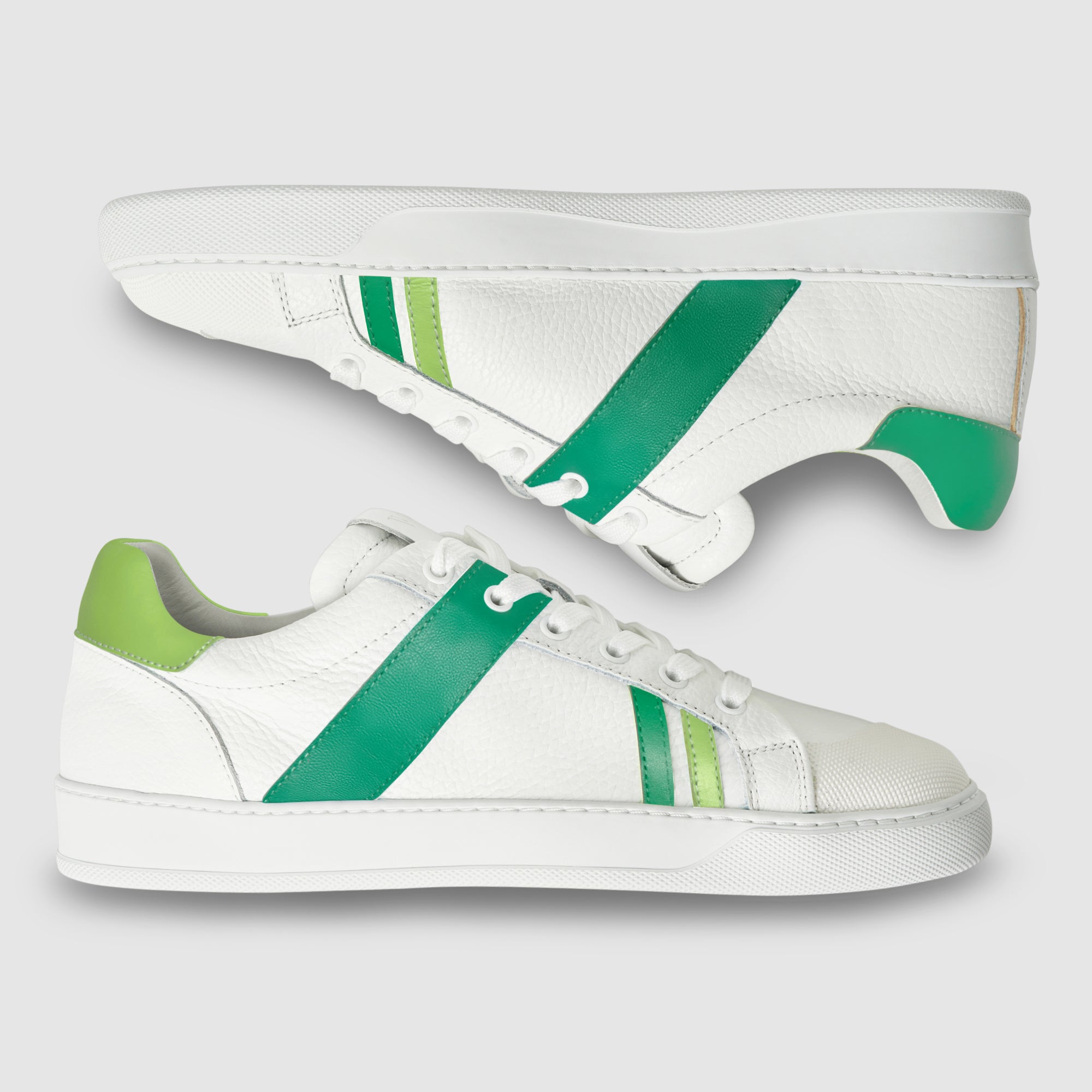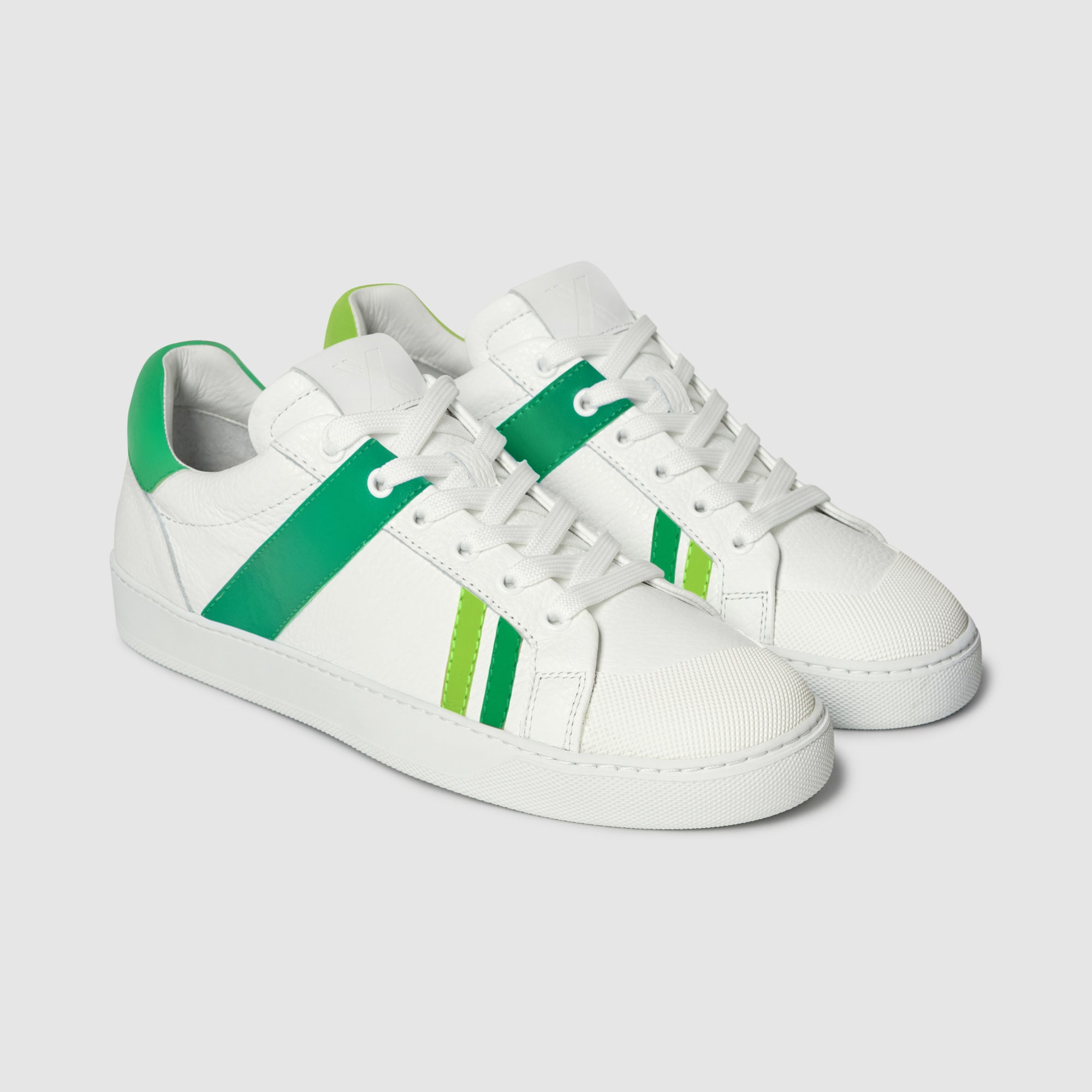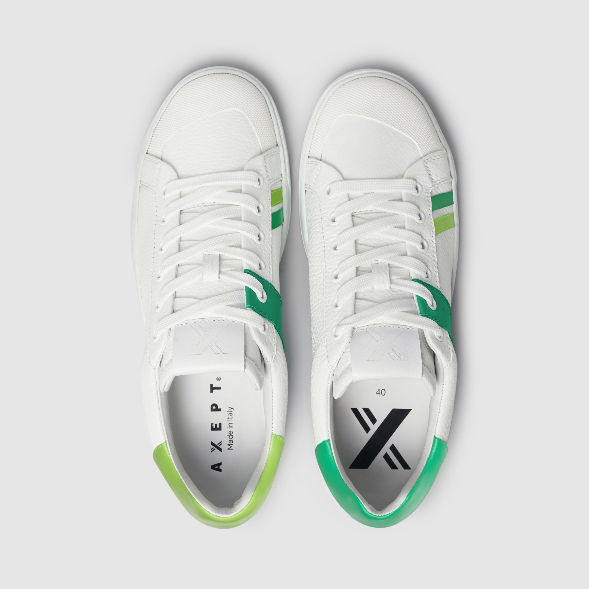 The Together sneaker combines minimalist design with our iconic mismatched style, bringing elegance and personality to every step. Handcrafted in Italy from premium grained leather, this sneaker features a flat sole that provides comfort and stability all day long. The distinctive asymmetrical textured rubber toe cap adds a contemporary flair, while the Axept logo, formed by uniting the two sneakers within the box, reflects the idea that two unique elements can come together to create something extraordinary. Our signature band covering the second eyelet stands out as a mark of originality and dynamism. Together is designed to be worn anytime, seamlessly complementing both casual and sophisticated looks.
