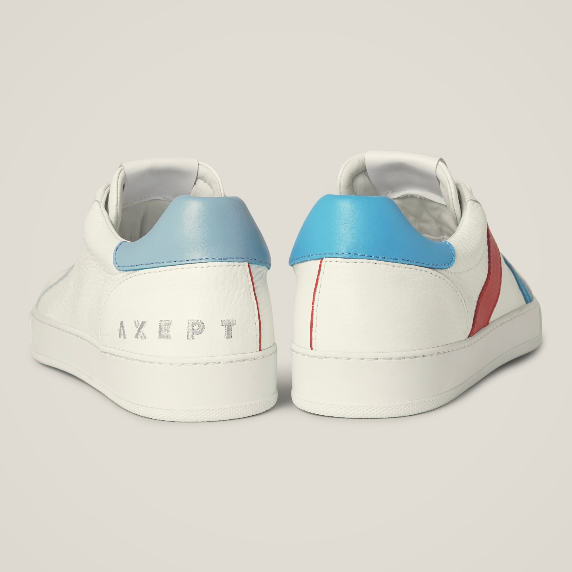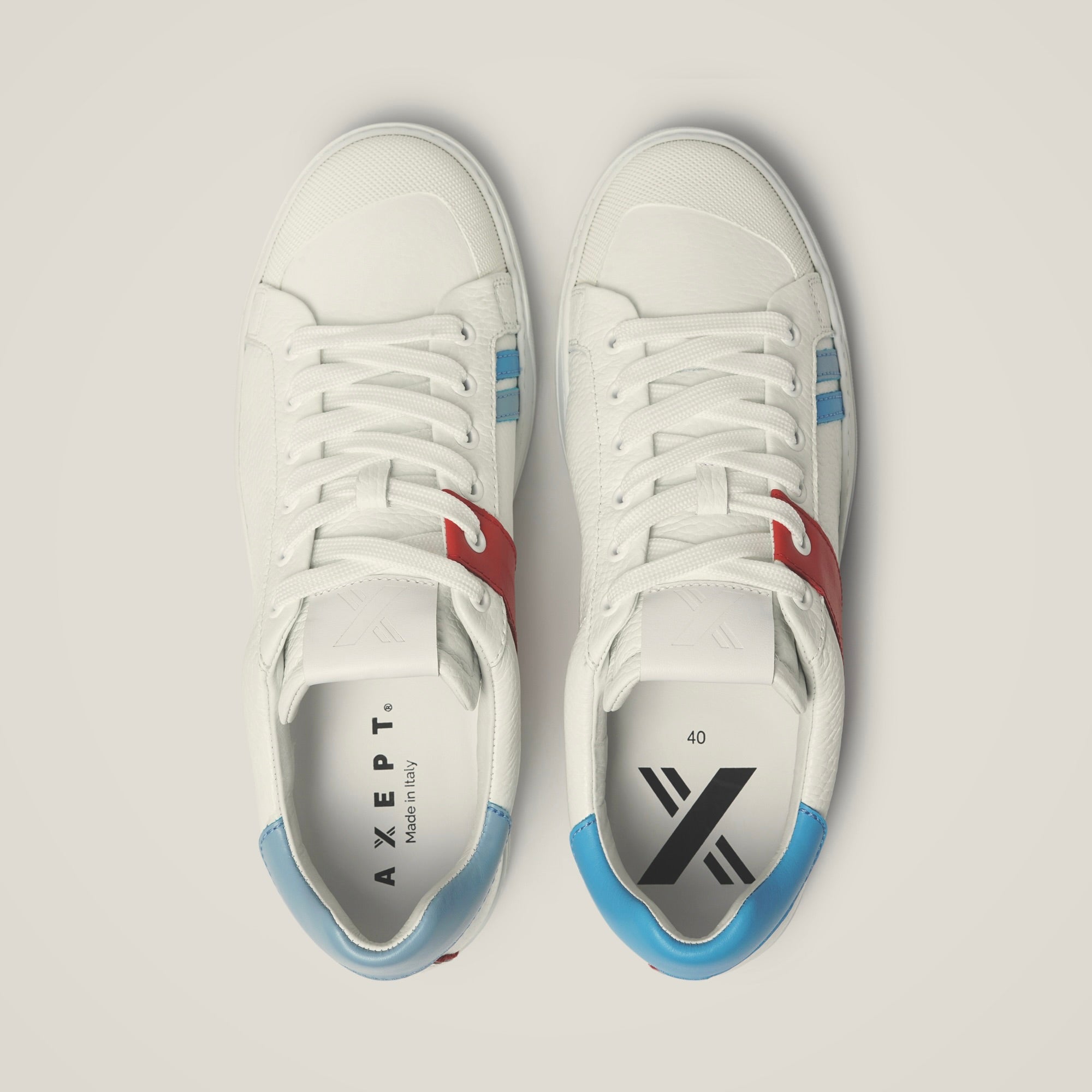 The Together sneaker combines minimalist design with our iconic mismatched style, bringing elegance and personality to every step. Handcrafted in Italy from premium grained leather, this sneaker features a flat sole that provides comfort and stability all day long. The distinctive asymmetrical textured rubber toe cap adds a contemporary flair, while the Axept logo, formed by uniting the two sneakers within the box, reflects the idea that two unique elements can come together to create something extraordinary. Our signature band covering the second eyelet stands out as a mark of originality and dynamism. Together is designed to be worn anytime, seamlessly complementing both casual and sophisticated looks.
